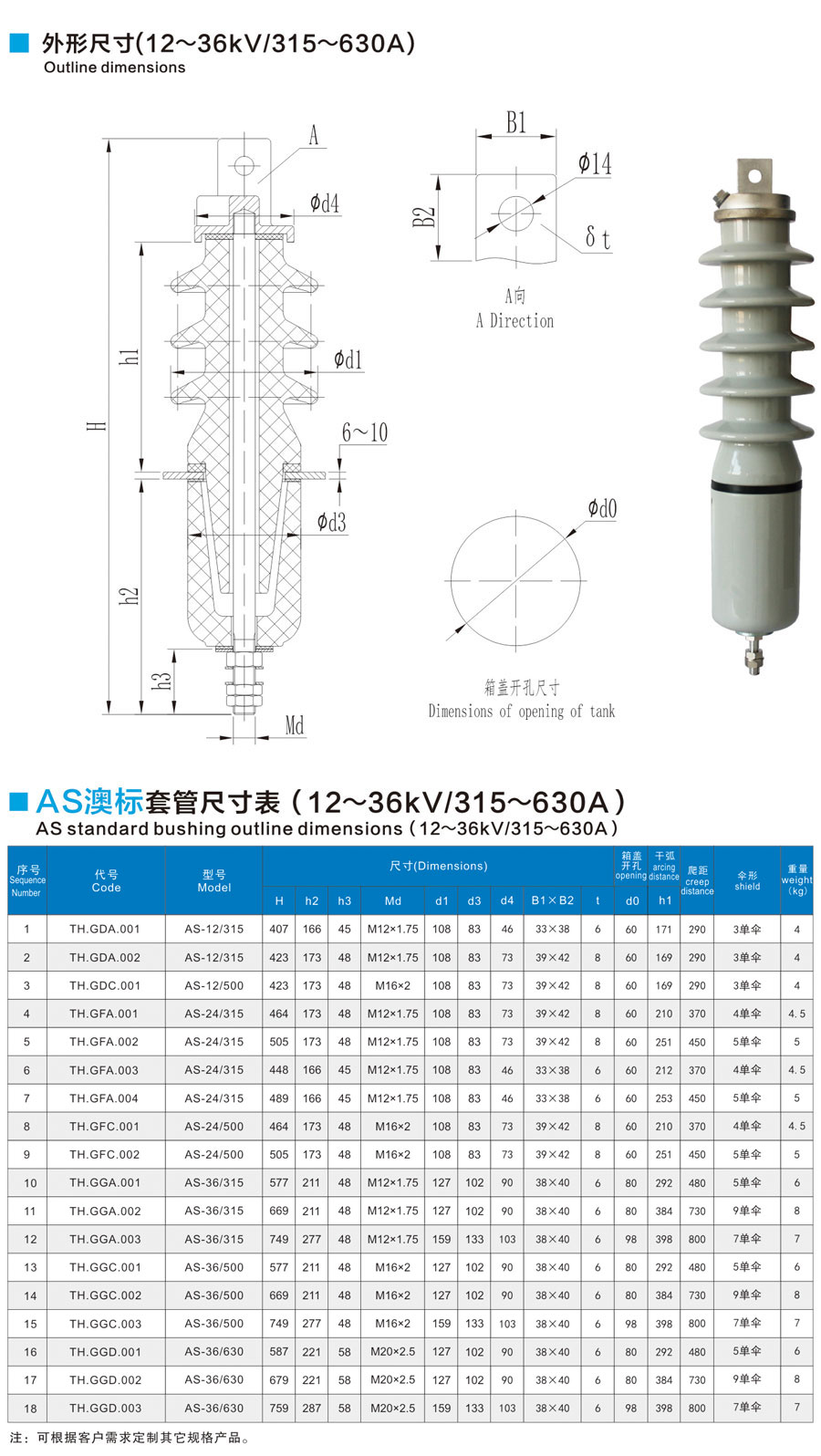 AS澳標套管12~3kV/315~630A