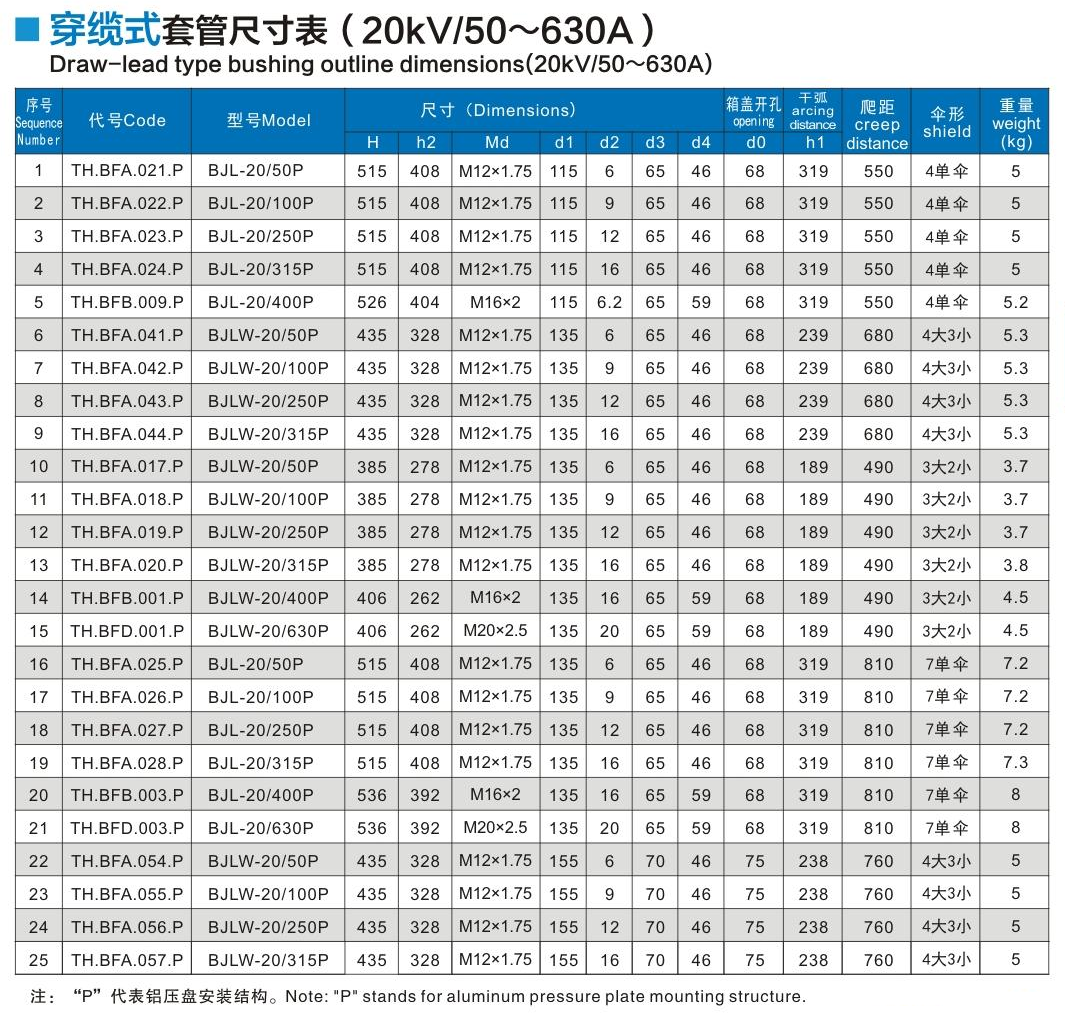 穿纜式套管20kV/50~630A