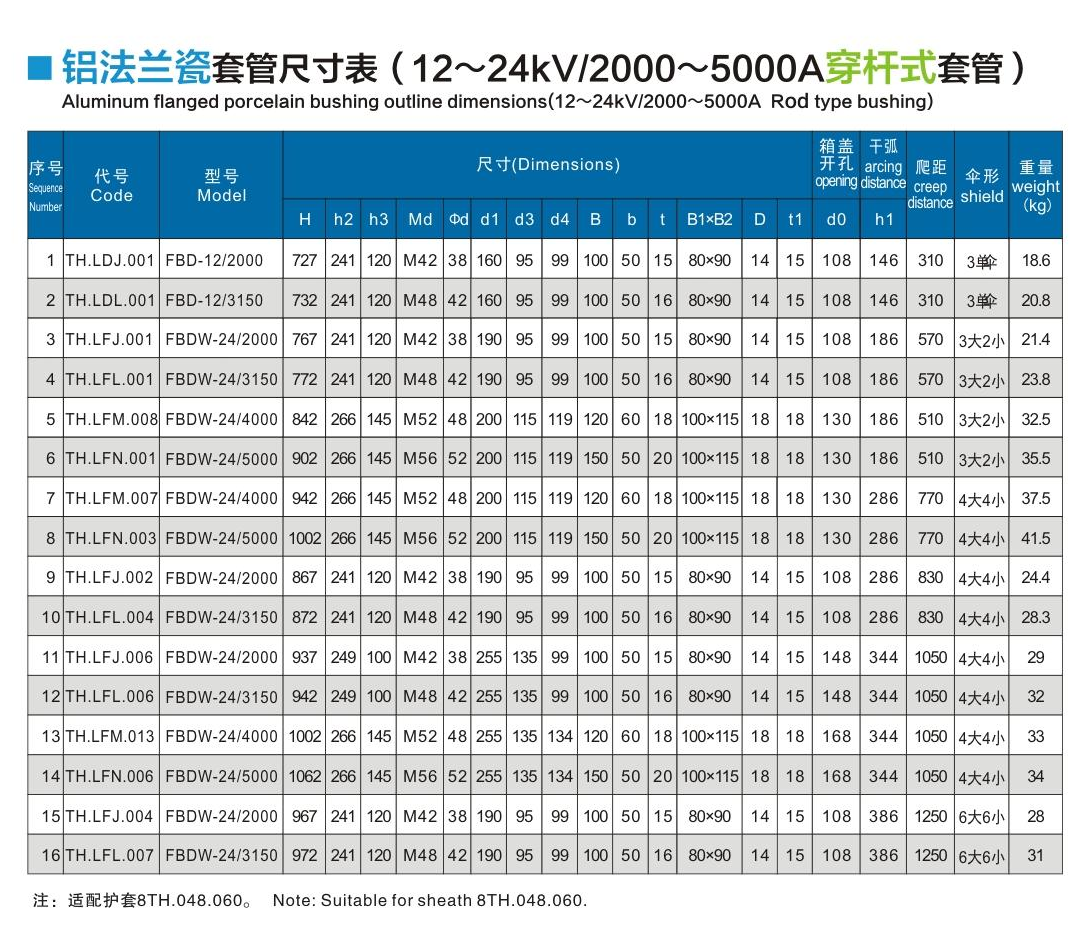 鋁法蘭瓷套管12~24kV/2000~5000A穿桿式套管