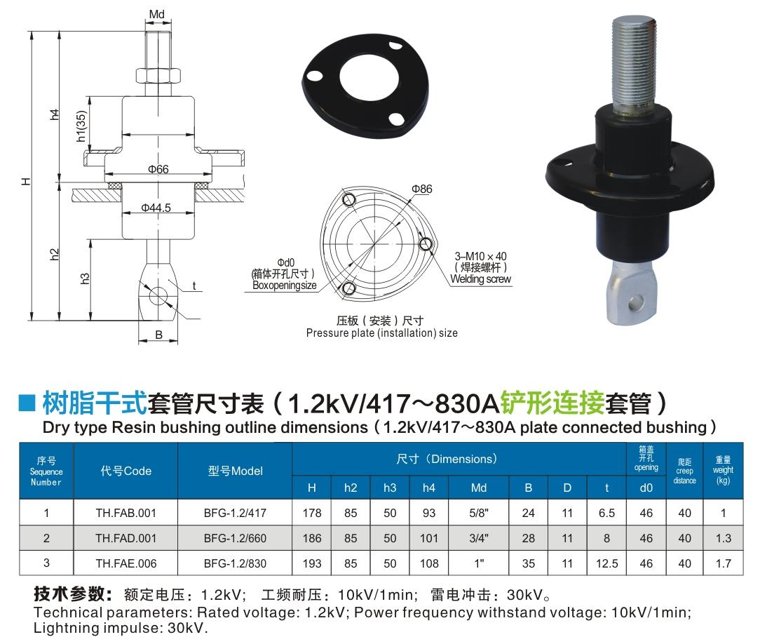 樹脂干式套管1.2kV/417~830A鏟形連接套管