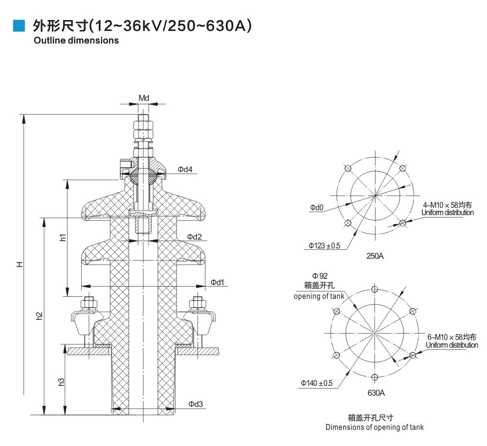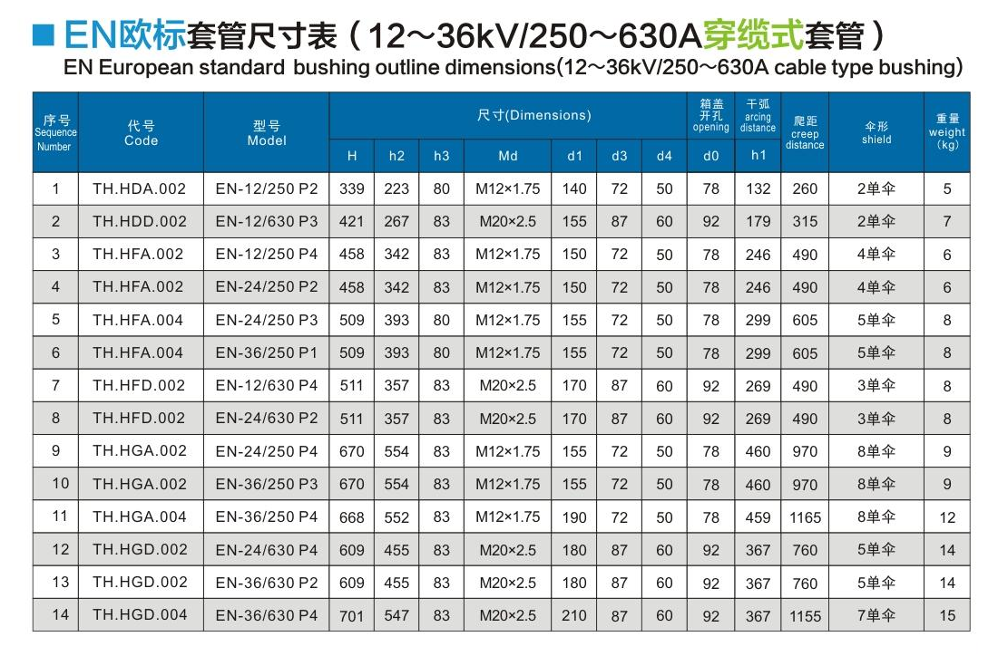 EN歐標套管12~36kV /250~630A穿纜式套管