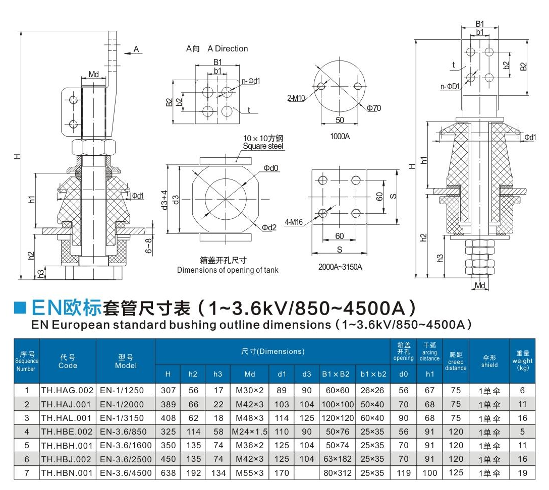 EN歐標(biāo)套管1~3.6kV/850~4500A