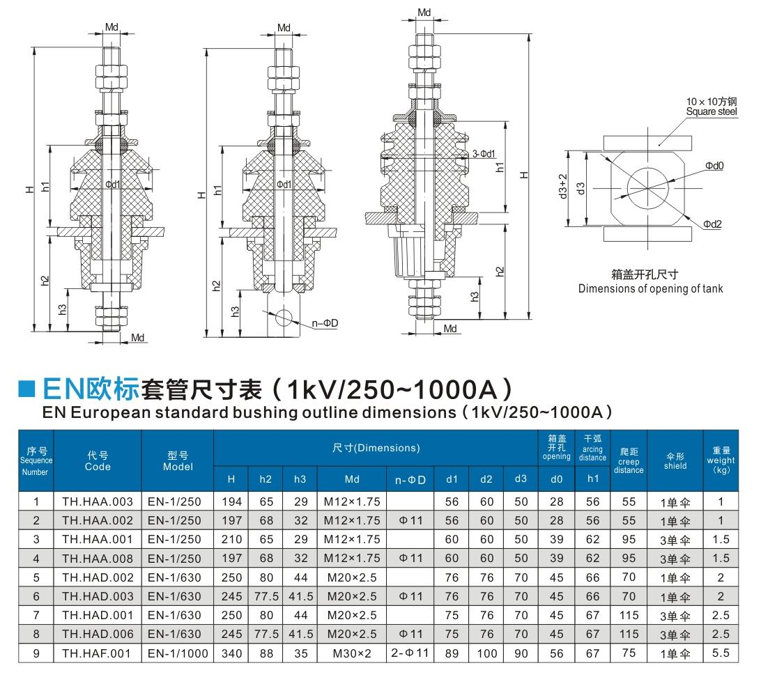 EN歐標套管1kV/250~1000A